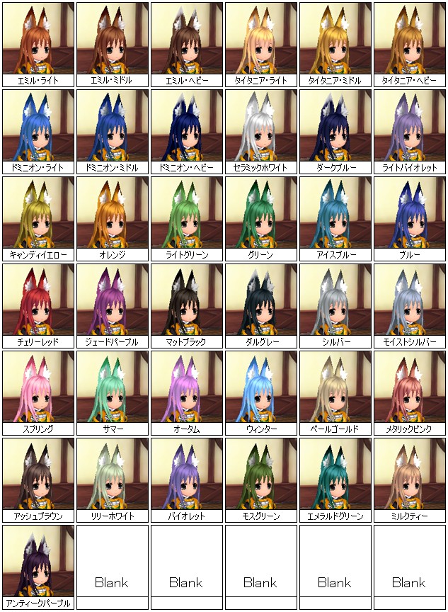| ヘアカラー・耳先の色一覧 |