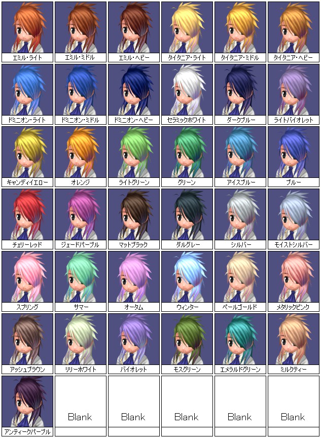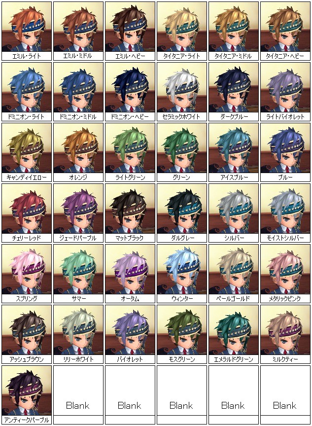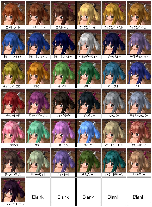 | ヘアカラー・リボンの色一覧 |