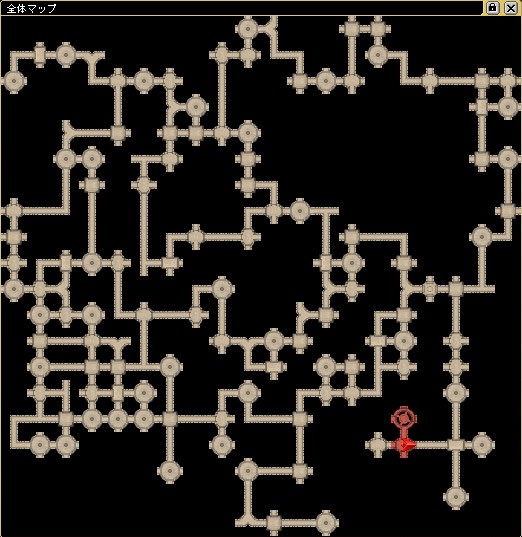 右下の小さなウィンドウがが従来のMapで、全体MAPをみるといかに広いか判ると思います。 地図は毎回自動的に生成され、1度クリアしたからといって、次回が同じMAPにはなりません。